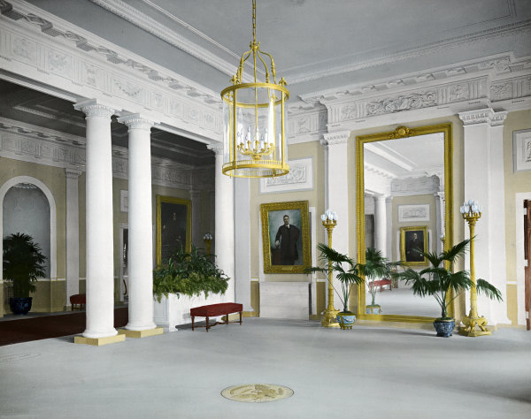 And, as you will see in the remaining photos, he transformed the White House from a threadbare old Victorian to a more modern look… Here’s his new entrance hall
