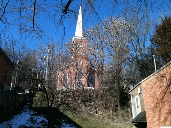 Of course it’s kind of an illusion; the church is up the hill on a different street where it is open and easy to view… but from this vantage point, it seems to be hiding.  Sometimes I wonder if the church is hiding today…