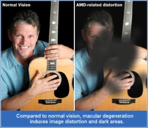 With macular degeneration, you lose the ability to see what you are looking at, and you have to learn to use peripheral vision. You also learn to listen carefully; I can cook by sound much of the time… I do not recommend macular degeneration!
