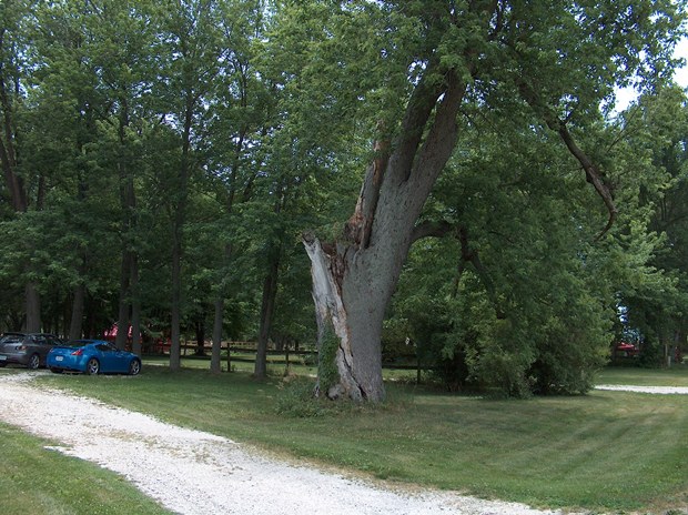 A ways back I posted about what we can learn from a tree; well here’s another one. I snapped this scene about six weeks ago, when the grass was still green in Illinois. This tree grabbed my attention because it was unusual…