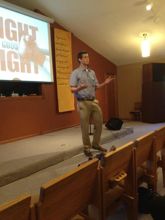 All though his growing-up years, he was very inquisitive; he could drive a guy crazy asking questions, and like so many teenagers he also liked to argue for argument’s sake… When the right time came he began to put childish things aside. He was married three years back to a beautiful and wonderful young lady named Chelsea, and suddenly “the kid” became a man. He graduated from college the day after his wedding, and it wasn’t all that long of a time after that that he decided to go back to school for the ministry (working full-time as well). Now he has his first preaching position at a church in Franklin, Illinois, and last night he returned “home” with his elders from Franklin where we ordained him; yes these are the times when we think back…
