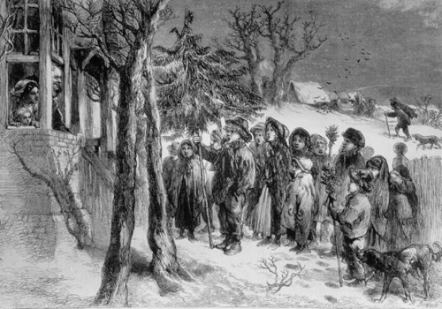 OK, try to picture this: People would go about town singing Christmas Carols in public! Apparently the ACLU was asleep on the job in those days: Horror!