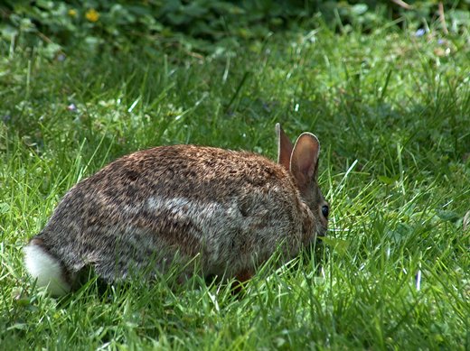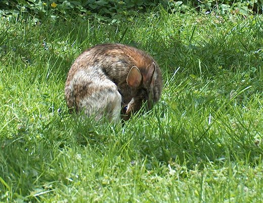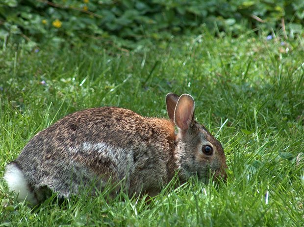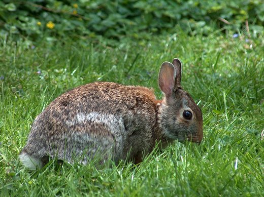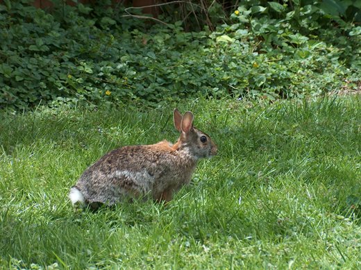 That dog has passed on, but we have rabbits that look just like that one in your pictures. They regularly visit our back yard, and my lady has adopted them as pets. So I have been told to forget the weed killer and let the clover and dandelions grow. The funny thing is that the grass still covers the yard, and the lawn looks okay.