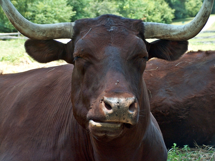 Remember our old pal Jake the Ox? (An Ox Named Jake June 26, 2014) Well I ran into him again recently, as he and his bro’ were relaxing after a tough morning of irritating their handlers, and here he is chewing on his…. whatever he’s chewing on.  It’s pretty hilarious watching that lower jaw go around and around in circles as he chews; I should have made this a video!