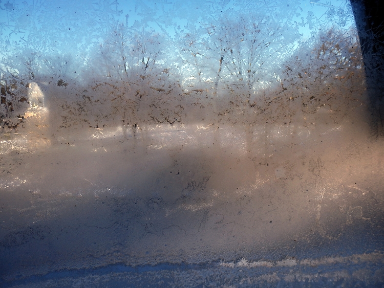 I’ve never taken photos of  ice-covered windows on the inside of a house before, not sure why, I just haven’t. In fact, I’ve never really paid attention to such things. You know what? It’s pretty cool when you look at it; the shapes, the way it manifests on the frozen 120 year old glass…