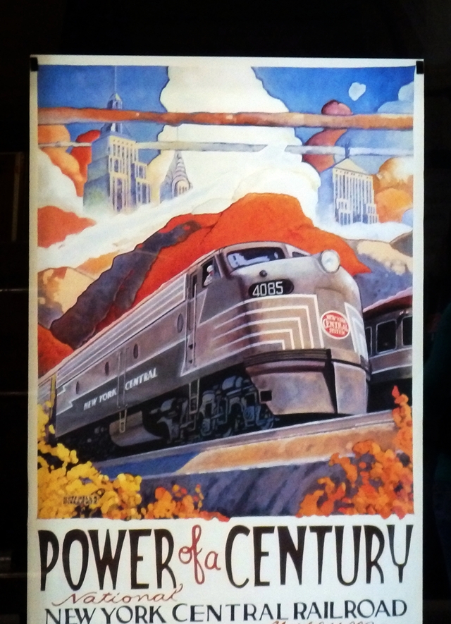 I also noticed an odd thing: They have a poster advertising the New York Central Railroad hanging in here. I rather doubt anything like that went on in the IC days, but I really like those old art deco posters, even if it is the wrong railroad.