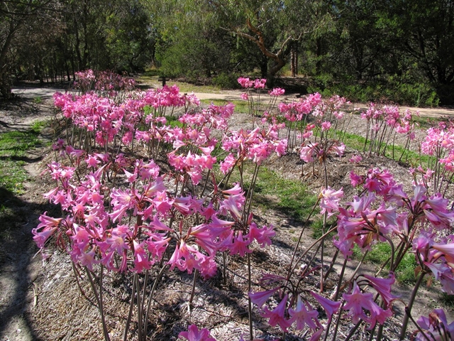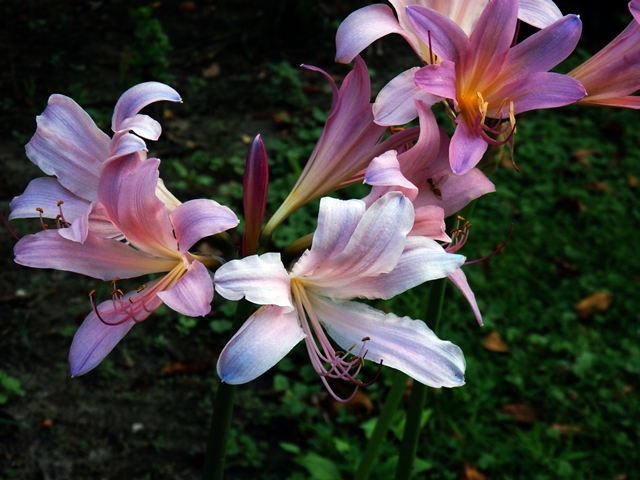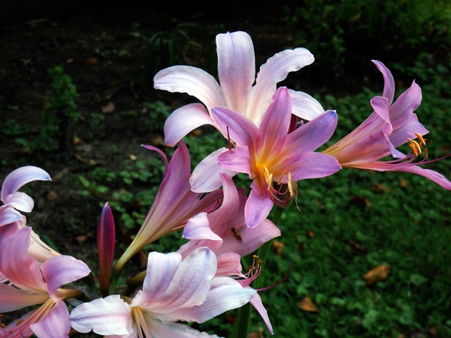 Actually, that’s what these flowers are called. OK, technically, they are called Amaryllis belladonna, but I think the common name is easier to remember for some reason. They are very strange flowers because they have no leaves, just a stem that pops up in late July or early August, this year, the ones in my yard are in bloom now.