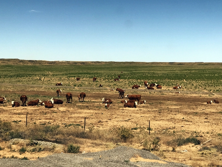 Cattle grazing peacefully as the Southwest Chief rushes past, west of Albuquerque, New Mexico