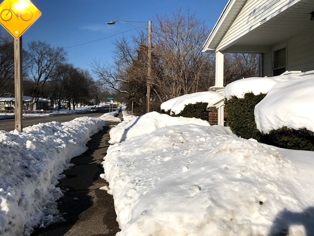 I took this photo this past Monday afternoon and I think that it is the first I’ve posted of my new front yard. Yep, this is where we now live, after moving from our old home in Rock Island. As I mentioned at the time, we wanted to downsize, and that we have accomplished. As you can also see from the photo, I have spent quite a bit of time recently out in the frigid cold with my trusty shovel.